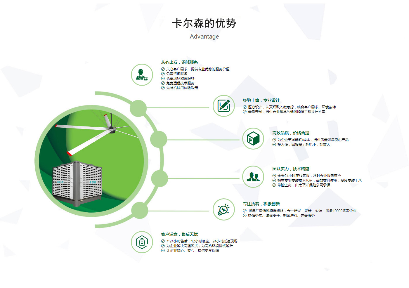 ??晉江市卡爾森機電設備有限公司是一家集設計、制作、銷售、安裝工業通風設備、中央空調、節能環??照{、脈沖除塵設備、環境凈化工程、等環保工程企業。并提供環境影響評價、環保工程總承包、環保工程設計、環保工程運營、環保工程成套設備等一站式服務。公司一直誠心服務于工業廠房的通風設施,我們的產品:“品種齊全、質量優越”。根據客戶的需求精心設計,高質量的制造,力求使每個產品都達到合理耐用、節能環保。科學的設計和精美高品質的產品,完善的服務系統,加強售前、售中、售后服務,對顧客在使用商品中出現的各種問題及時解決,使顧客無后顧之憂。產品廣泛適用于各類型制造業、機械類、五金冶煉、食品、化工、電子、紡織、噴涂、娛樂以及服務等場所。我們秉承“質理過關、價格合理、交期準時、服務周到”而受到新老客戶的好評和信賴。我們堅持“客戶至上、質量上乘”為宗旨,努力工作,為您換來潔凈美好的明天。卡爾森愿以過硬的質量,良好的信譽同各界朋友一起開創更加輝煌的未來。